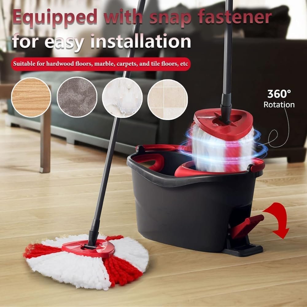【Fácil instalación】: la producción estricta garantiza que este reemplazo de trapeador sea del mismo tamaño que el original. Y es fácil de reemplazar: simplemente tire de las vías del trapeador para liberar el cabezal y reemplácelo presionando el marco rojo hasta que encaje en su lugar.