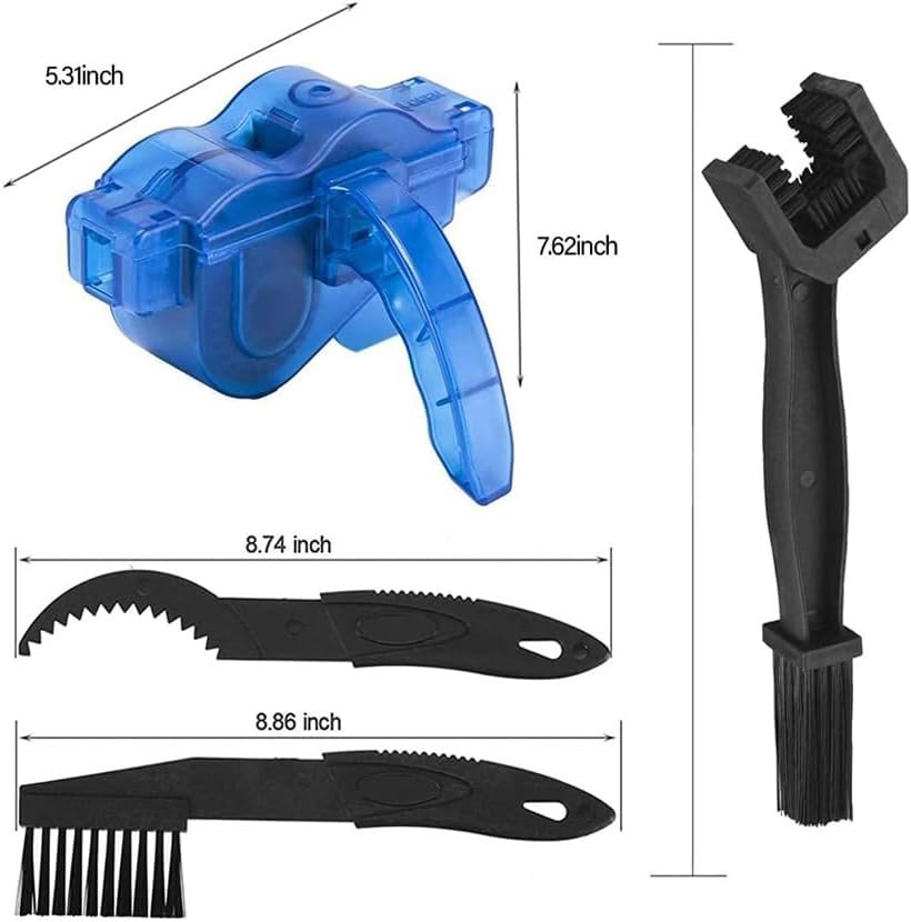 Esta herramienta de limpieza de cadena le ayudará a limpiar su cadena y evitar las manos sucias, tres herramientas diferentes se adaptarán a todo tipo de engranajes de cadena. Raspe las cosas sucias en las esquinas de la placa del engranaje con un limpiador de dientes, luego límpielos con un cepillo de una cara.
