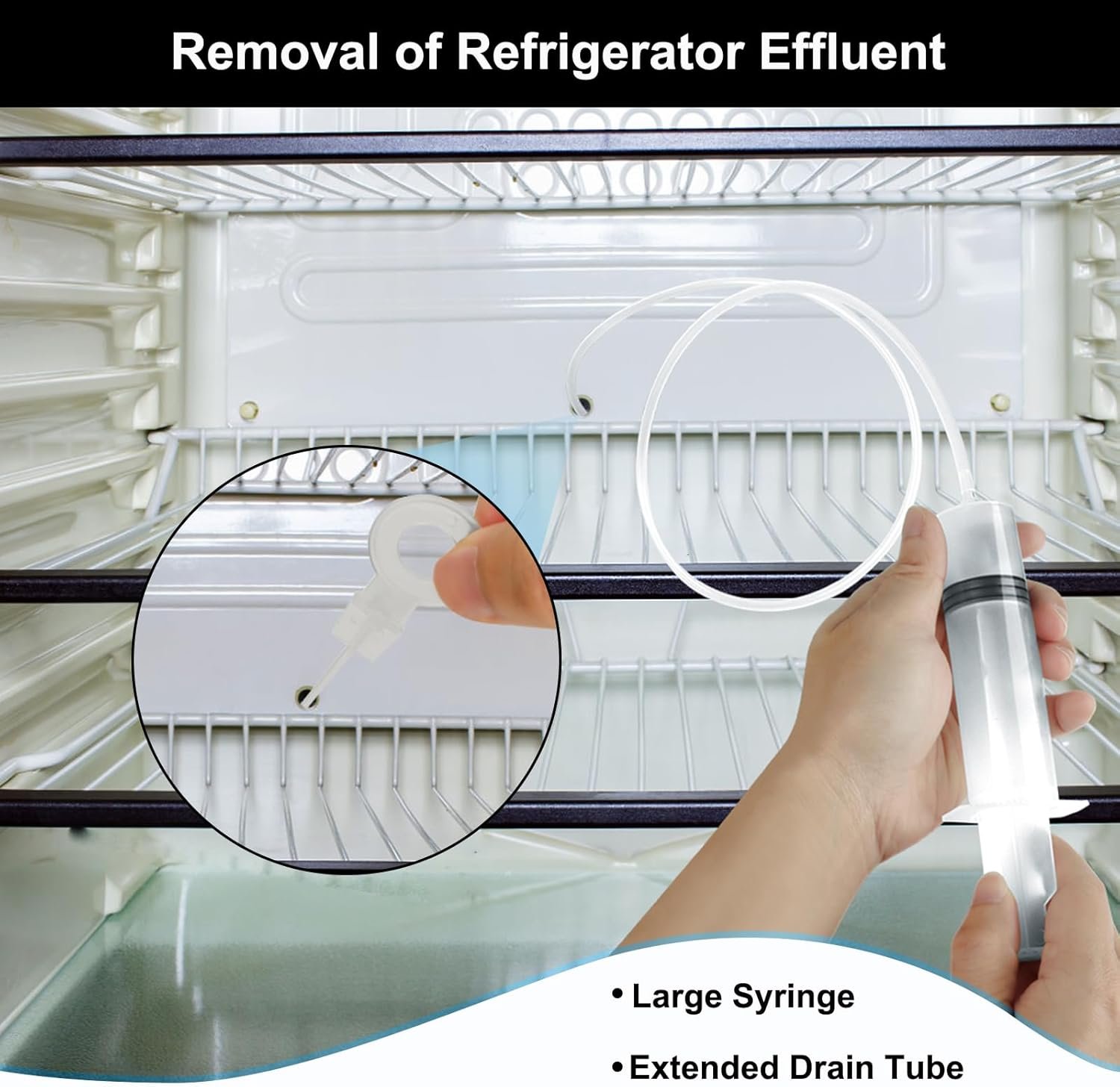 【Widely Applicable】Utilice este set kit de limpieza del orificio de drenaje del refrigerador para maximizar la eliminación de olores de su frigorífico, ideal para frigoríficos, congeladores y enfriadores de vino. También es ideal para limpiar fregaderos de cocina y baño, desatascar tuberías y otras zonas obstruidas.