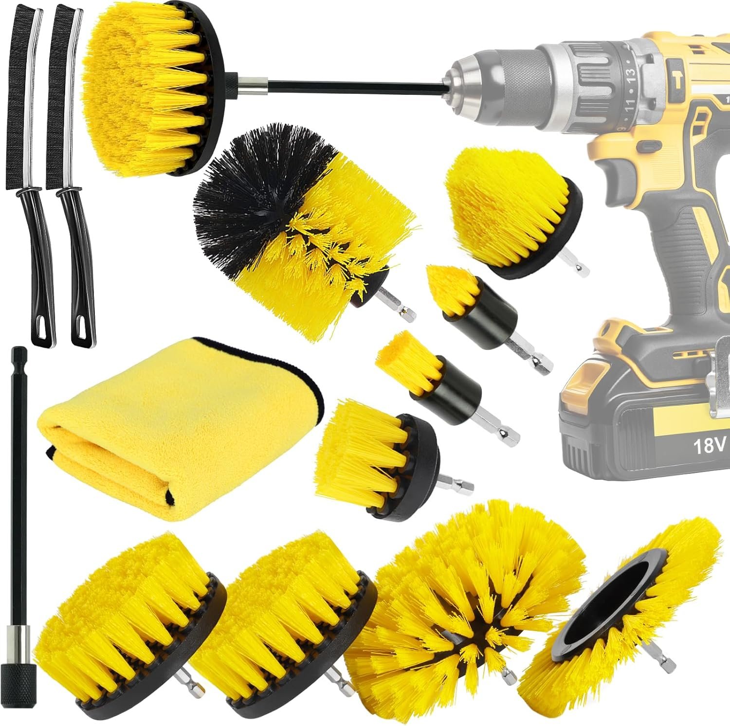 MWZEAUL 13 Piezas Cepillo para Taladro Limpieza Kit, Cepillo Limpieza Hogar, Cepillo Limpieza Electrico, Cepillo Taladro Tapiceria para Limpiar Coche, Llantas, Azulejo, Baño, Cocina