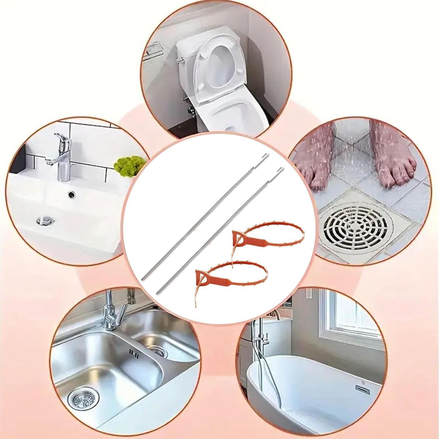 El paquete incluye: 2 cepillos de limpieza de fregadero de 60 cm, 2 desbloqueadores de serpiente de drenaje naranja de 51 cm. Adecuado para limpiar el orificio de drenaje regularmente para evitar obstrucciones.