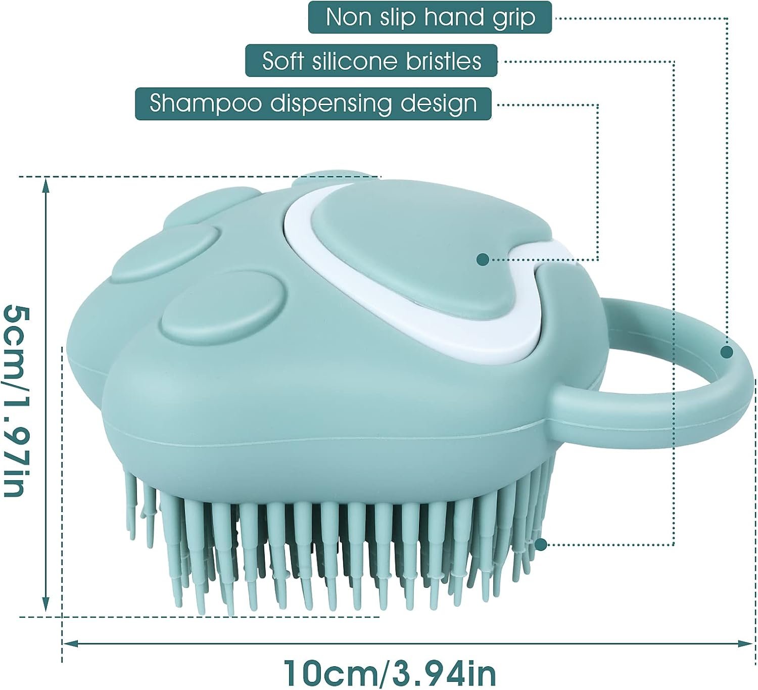 TIESOME Cepillo de Baño para Perros y Gatos, Dispensador de Champú de Silicona, Suave Cepillo de Ducha para el Lavado de Mascotas de Pelo Corto y Largo (Azul en forma de pata)